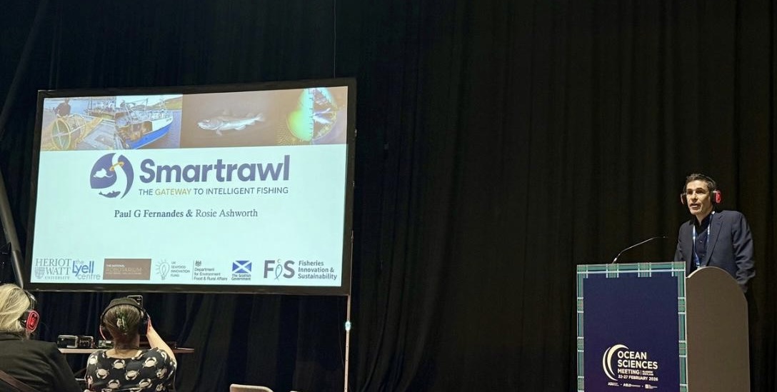FIS was delighted to chair a panel on the ‘New Eyes of Fishing Technology’, focused on the role of cameras and AI in advancing fisheries sustainability. Presenting FIS’ Smartrawl technology, collaborator Professor Paul Fernandes, Heriot-Watt University, updated attendees on the latest trials of the cutting-edge Smartrawl ‘gate’, demonstrating how its rotating action – dictated by an AI-enable computer, reviewing catch in the trawl via a stereo camera – can select and sort-out unwanted species. Smartrawl is currently advancing through Technology Readiness Levels and, following sea-trials during which the system will be compared to traditional trawling, will be a ‘Technology Demonstrated in a Relevant Environment – which means the invention is taking strides towards being a viable solution to the global problem of discards and bycatch.